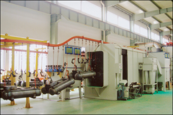 储气罐涂装生产线采用积放输送链输送线,将产品输送到每一道工序上。