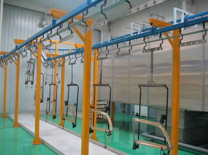 汽车车门电泳涂装生产线由人工上下工件区、工件输送线、电泳池系统、烘干系统组成。