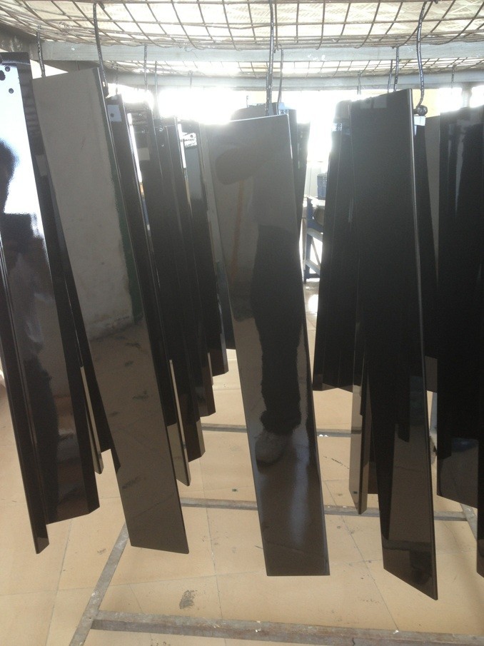 人工上件——手动除尘——自动静电除尘——往复机自动喷涂——烘干炉烘干——自然冷却——人工下件