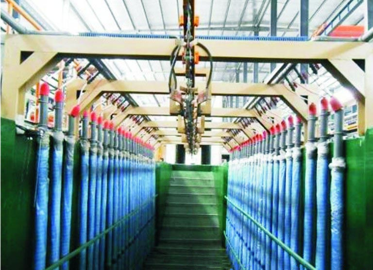 汽车底盘涂装生产线由人工上下工件区、工件输送线、电泳池系统、烘干系统组成。