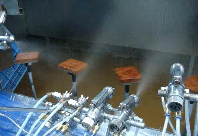 6.喷枪采用固定的形式对产品进行喷涂,每一把喷枪负责产品表面的一部分区域;