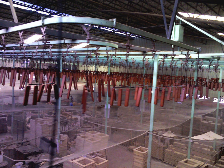 装饰木条DISK静电自动喷涂设备由人工上下工件区、工件输送线、除尘系统、Ω型喷漆室、旋碟静电喷枪系统、上下往复机系统、供漆系统、洁净鲜风供给系统、废气排放系统、烘干炉、加热系统、冷却系统组成。